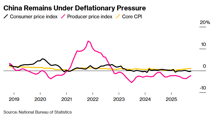 生产者价格的下行趋势已持续近三年,削弱了制造商的盈利能力。这些企业不得不在消费者信心疲软和美国贸易政策导致的生产扰动中艰难应对。疲弱的消费需求,加上持续的房地产低迷以及美国关税对出口的压力,正在拖累中国经济的整体表现。