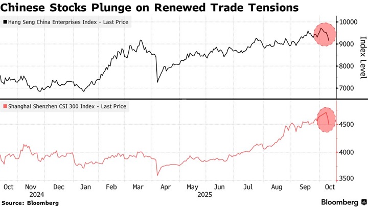 特朗普加征100%关税言论“吓坏”中国市场!中国股市大跌 中美恐再爆发贸易战