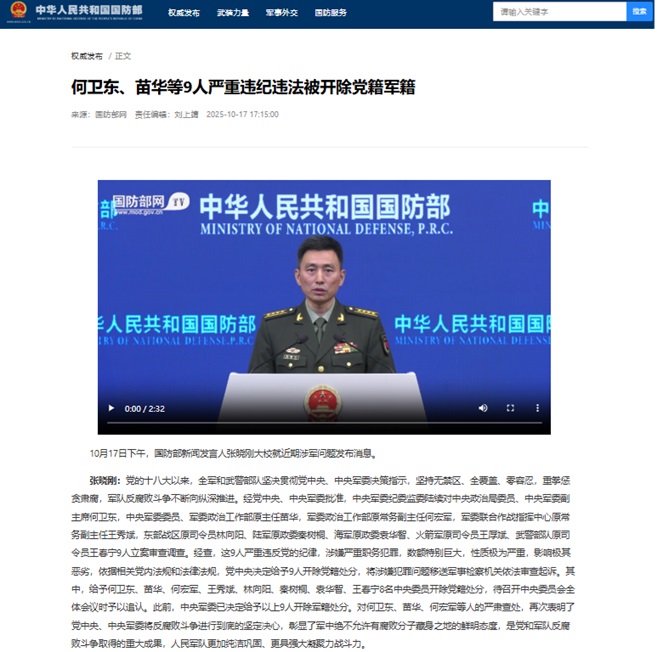 (截图来源:中国国防部)