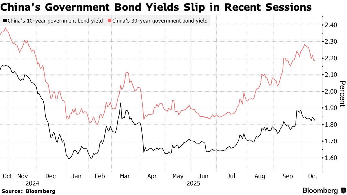 30年期国债收益率在过去六个交易日中有五天下跌,周二收于约一个月来的最低水平,周三(10月22日)基本持平。10 年期国债收益率则连续第二天下滑。