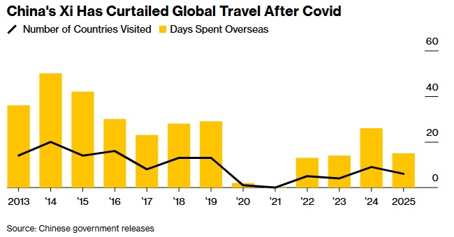 曾经出访次数超过美国总统的习近平,如今更倾向于北京所称的“主场外交”。今年夏天在连续举行的阅兵式和安全峰会上,习近平在未离开中国的情况下,与普京、莫迪以及朝鲜领导人金正恩等人进行了引人瞩目的合影与会晤。活动结束后,官方媒体《人民日报》刊登了一篇特写,详细介绍习近平紧凑的六天行程,显然意在回应外界关于他在阅兵仪式期间显得疲惫的批评。