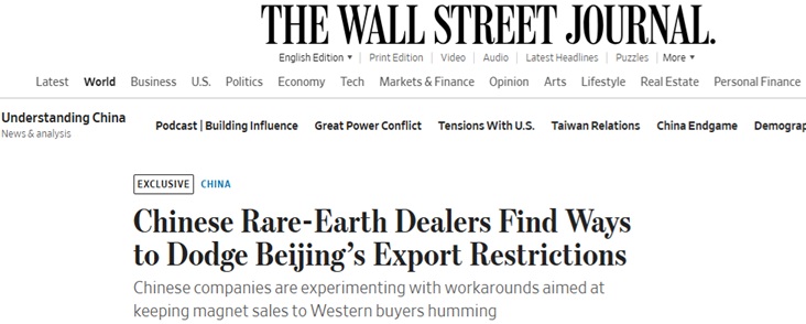 FX168财经报社(亚太)讯 美国《华尔街日报》周二(12月2日)发布独家报道称,中国的稀土磁体企业正在为中国政府繁苛的出口限制寻找变通办法。他们希望在不触犯中国监管部门的情况下,继续向西方买家保持销售渠道畅通。