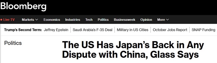 #中美关系#FX168财经报社(亚太)讯 美国彭博社周五(11月21日)报道称,美国驻日本大使乔治·格拉斯(George Glass)周四表示,在日本首相高市早苗(Sanae Takaichi)就台湾发表相关言论并引发与中国的争端之际,美国将坚定支持日本,并补充称北京方面的一些反应“令人愤慨”。