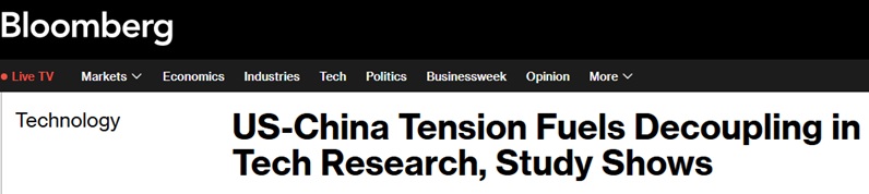 根据澳大利亚战略政策研究所(ASPI)的“关键技术追踪器”(Critical Technology Tracker),中国与美国研究人员的合作只占其全部国际合作的四分之一,较十年前“超过一半”的水平显著下滑。