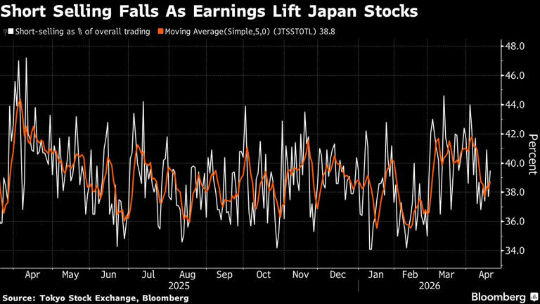 还有部分市场观察人士指出,在当前环境下,要建立明确的看空立场并不容易,因为包括日本日经225指数和中国台湾加权指数在内的亚洲主要股指已反弹至纪录高位。与此同时,日本股市卖空占总成交的比率自本月初以来持续下降,其5日均值已从4月3日的41.8%回落至上周五的约38.8%。