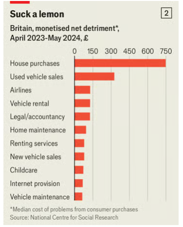 英国政府2024年委托的一项研究估算,由于购买了质量低劣或存在缺陷的商品和服务,英国民众每年损失相当于国内生产总值的2.5%。这包括重买同类商品的费用,或者为投诉而浪费的时间。