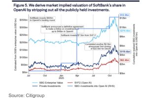 花旗表示:“我们主要的结论是,软银的股价很可能是OpenAI价格的良好替代指标,因为两者同步波动。”