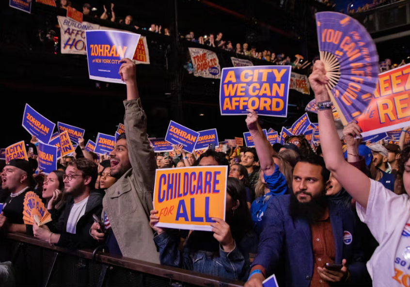 “未来掌握在我们手中,我的朋友们,我们推翻了一个政治王朝。”纽约市市长当选人佐赫兰·曼达尼在庆功集会上对欢呼的人群说。