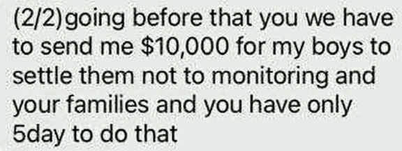 女儿说,在自己说服父亲不要再给骗子打钱后,对方居然发来了威胁:给你5天时间给我打10000刀,不许告诉警察,不然我的人会让你全家倒霉。