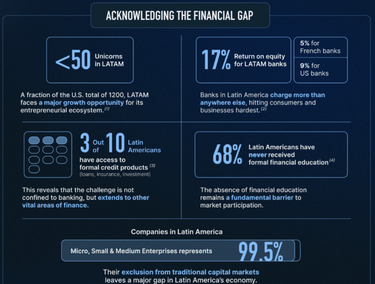 银行服务缺乏也在该地区造成了系统性低效,包括技术壁垒和高启动成本,这些都在减缓流入拉丁美洲资本市场的投资。