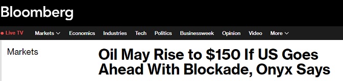 Onyx Capital Group董事总经理Jorge Montepeque在彭博电视上表示:“我们今天早上看到的数字——103美元,涨幅8%——根本无法反映如果美国真的决定实施这一拦截措施可能发生的情况。这真的没有任何意义,油价应当是140美元、150美元。”