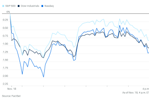 西德克萨斯中质原油交易价格跌落每桶 69 美元下方,而股市在财报繁忙的一周延续跌势。