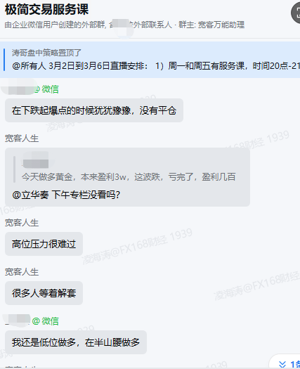 在波动快速的黄金、白银市场,方向对了,更要节奏对。不少交易者都有过这样的经历:方向做对了,利润却拿不住,甚至由盈转亏。在《极简交易方法论》服务群里,就有同学真实分享了自己的交易记录:原本持有的黄金多单已经有非常可观的盈利,但在老师提示行情转空后,没能及时设置保护、调整策略,导致账面利润快速缩水。