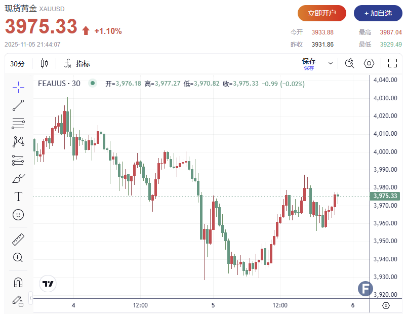 现货黄金短线拉升,已完全收复ADP数据公布以来的跌幅,现报3975.33美元/盎司。