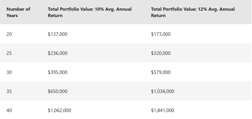 如果年均回报率提高至12%,则40年后资产甚至可达到约184万美元。