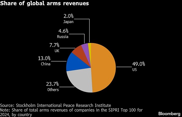 根据斯德哥尔摩国际和平研究所(Stockholm International Peace Research Institute)的数据,该军舰交易的主承包商三菱重工业公司(Mitsubishi Heavy Industries Ltd)按2024年国防业务收入排名全球第32位。