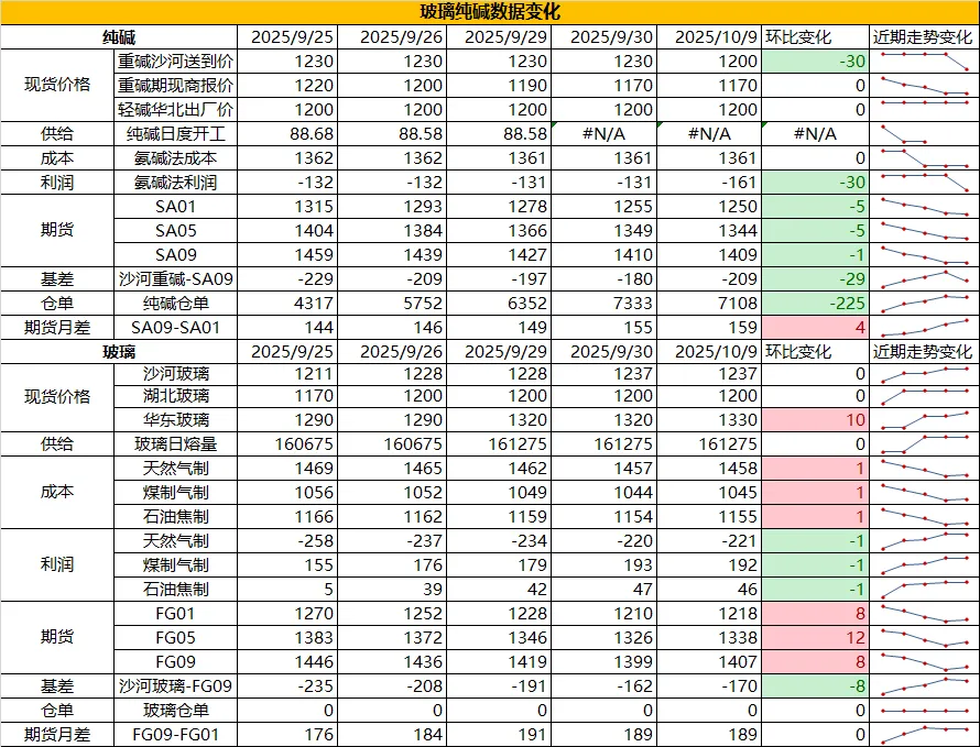 1.当前现货市场偏稳定,过节期间碱厂累库为主,节后盘面下跌,期现成交较好,玻璃厂大量从期现端补库,侧面对碱厂形成负反馈,另外光伏玻璃基本面转弱,前期点火计划放缓,侧面对纯碱的刚需减弱,现货10月供需压力加大。
