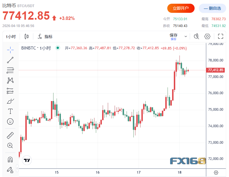这枚全球市值最大的加密货币突破了自2月底战争爆发以来持续震荡的窄幅区间上沿,价格自2月3日以来首次站上7.8万美元关口。盘中,比特币一度上涨4.1%,触及78302.73美元,随后略微回吐部分涨幅。