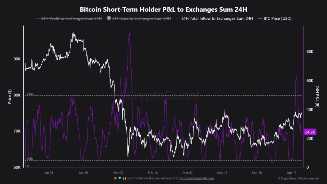 不过,尽管近期比特币价格反弹伴随着长期持有者供应量增加,市场同时也面临明显卖压。其中,短期持有者(STH,Short-Term Holders,即持币时间不超过155天的投资者)近期向交易所转入了大约6万枚比特币。另一项指标显示,短期持有者最近在亏损状态下转移比特币,这说明即便市场出现反弹,他们仍在以亏损状态离场。
