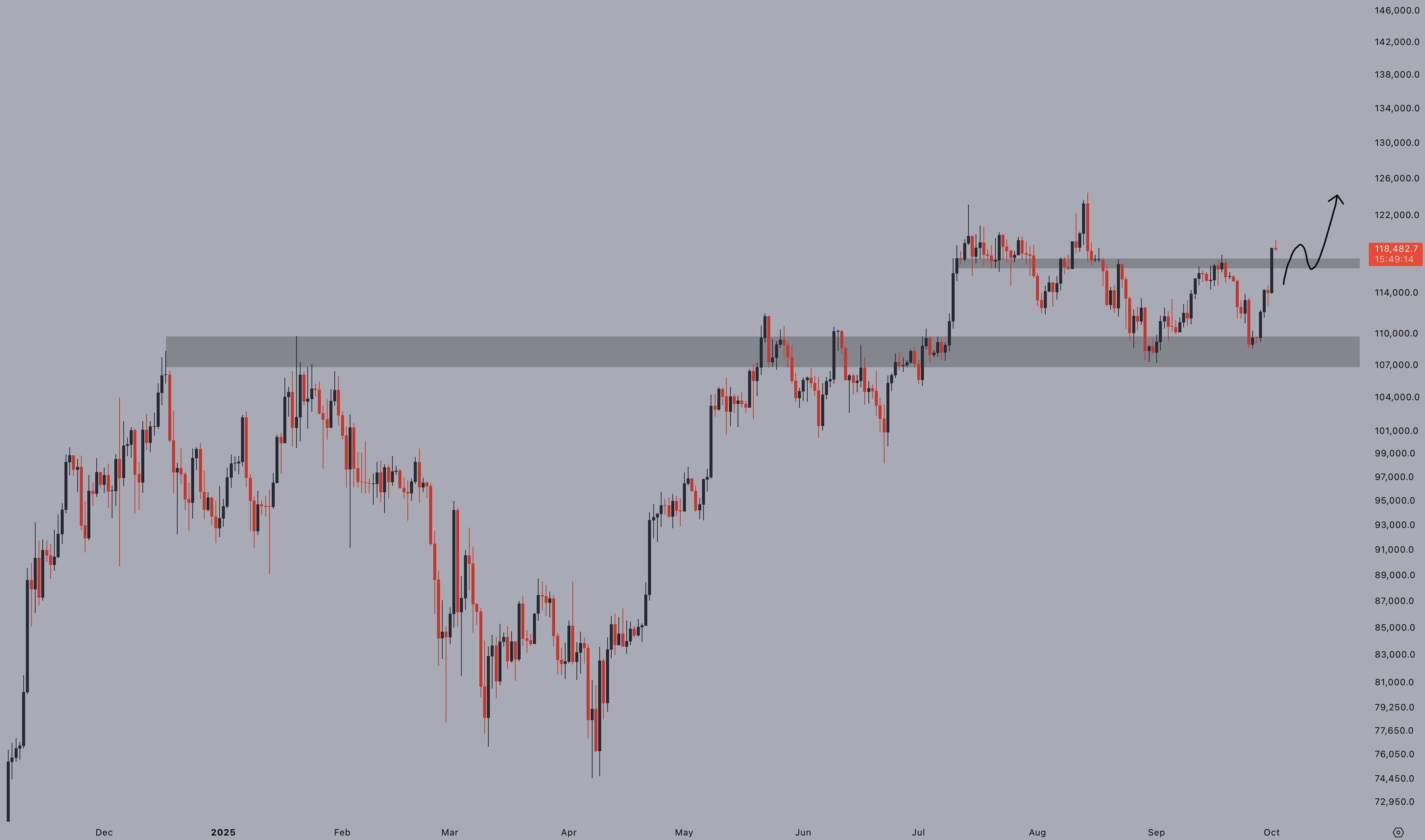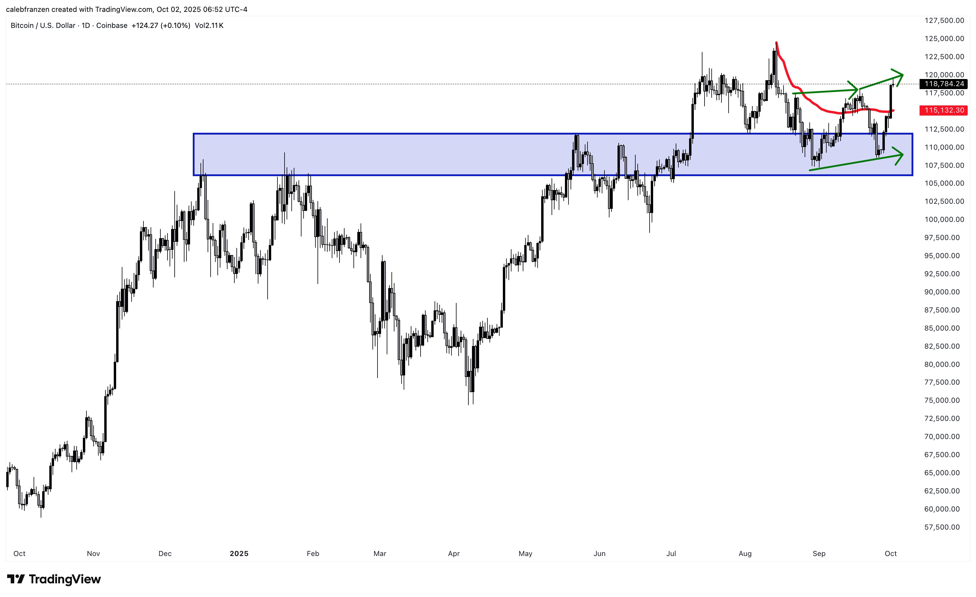 Jelle写道:“如果能守住11.8万美元,新高指日可待。‘Uptober’(牛市十月)来了。”