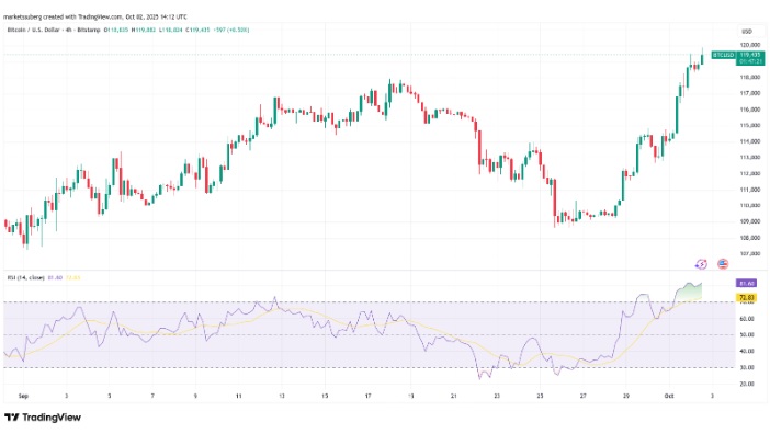 #比特币最新消息#FX168财经报社(亚太)讯 周四(10月2日),比特币价格上涨1%,多头攻克12万美元,为自8月中旬以来首次,市场对比特币刷新历史高点的期望进一步升温。