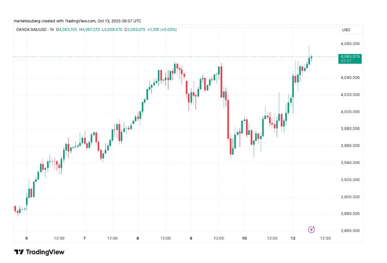 股票和黄金也受到冲击——但到周一,黄金已创下4078美元/盎司的新高。
