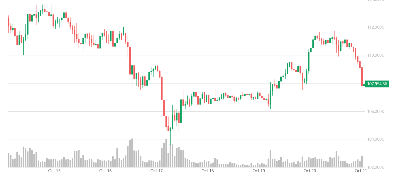 FX168财经报社(亚太)讯 比特币在经历近期回调后试图趋稳,周二(10月21日)亚洲时段交投重拾跌势下滑至11万下方,以太坊在4000美元下方加速走低。与此同时,尽管散户投机降温,机构兴趣仍然强劲。#比特日报#