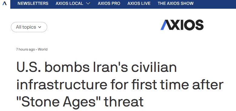 #伊朗危机追踪#FX168财经报社(亚太)讯 美国新闻网站Axios周四(4月2日)报道称,美国军方周四袭击了伊朗一处重要的民用基础设施,这是首次发生此类行动。而就在数小时前,美国总统特朗普(Donald Trump)在黄金时段讲话中威胁称,要将伊朗“炸回石器时代”。