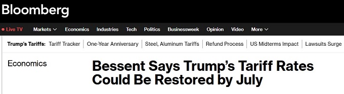 FX168财经报社(亚太)讯 美国彭博社周二(4月14日)报道称,美国财政部长贝森特(Scott Bessent)表示,到7月份时,总统特朗普(Donald Trump)的关税可能会回到其多项征税措施被最高法院推翻之前的水平。