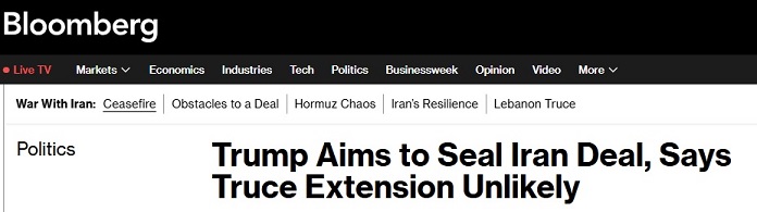 特朗普在周一的一次彭博独家电话采访中称,这项他于4月7日宣布的停火将于“华盛顿时间周三晚间”到期——这或许能为谈判争取更多时间。但特朗普同时表示,如果在此之前未能达成协议,他“极不可能延长停火”。