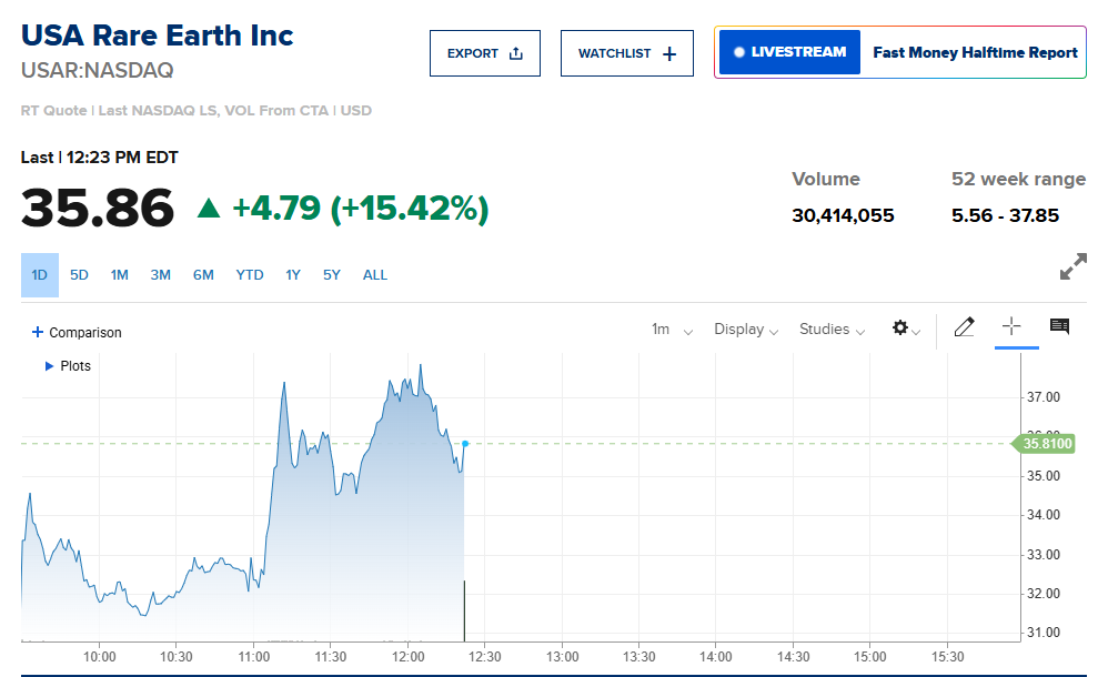 不过,与整体市场的下行形成鲜明对比的是,稀土相关个股迎来暴涨。MP Materials股价飙升15%,USA Rare Earth大涨19%,Energy Fuels上涨超过10%,NioCorp Developments上涨近14%。投资者普遍认为,在中美博弈背景下,稀土战略地位将进一步凸显,相关企业的议价能力和盈利预期可能显著提升。