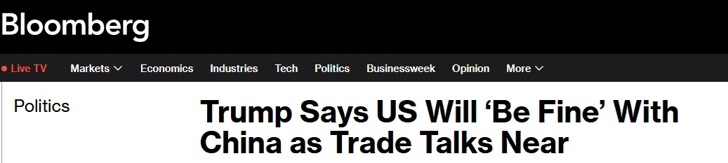#中美关系#FX168财经报社(亚太)讯 美国彭博社周一(10月20日)最新报道称,美国总统特朗普(Donald Trump)表示,美国与中国“会没问题”。这番言论发表之际,中美双方即将重返谈判桌,而脆弱的贸易休战期也即将到期。