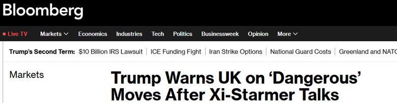 特朗普的批评发表在斯塔默与习近平会面数小时之后。斯塔默此行在为英国企业争取更大中国市场准入方面取得了进展。