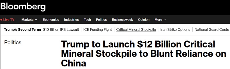 这意味着美国将大规模投入,积累被视为工业经济——包括汽车、航空航天和能源等行业——所必需的矿产;同时也凸显特朗普试图让美国供应链逐步摆脱对中国依赖的努力。中国是全球关键矿产的主要供应国与加工国。