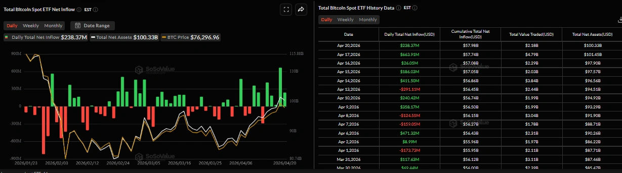 比特币站稳76000美元上方,机构与企业买盘继续提供支撑