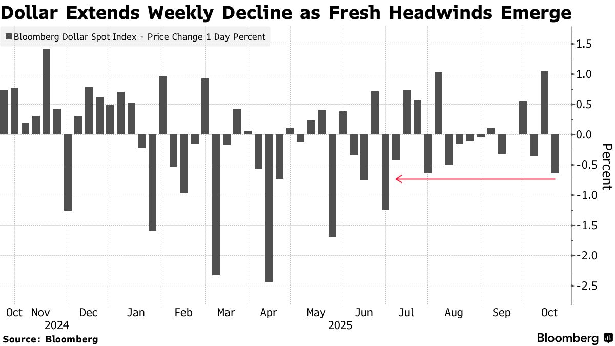 Pepperstone研究策略师Dilin Wu表示,贸易紧张、美联储独立性担忧以及美国政府关门的多重因素叠加,使美元容易受到所谓“贬值交易(debasement trade)”的冲击,即投资者转向难以被单一国家信用轻易稀释的资产。