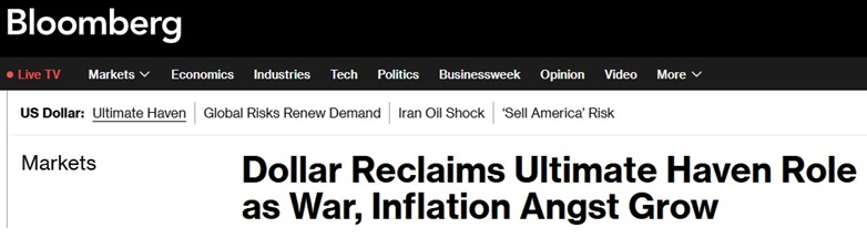 #伊朗危机追踪#FX168财经报社(亚太)讯 美国彭博社周三(3月4日)报道称,随着中东冲突不断扩大,有一点变得愈发明显:在投资者纷纷寻求安全资产之际,美元依然是首选的核心避险资产。