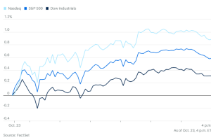 截止发稿,道琼斯工业平均指数上升0.32%,标准普尔500指数上升0.26%,纳斯达克综合指数微升0.15%。