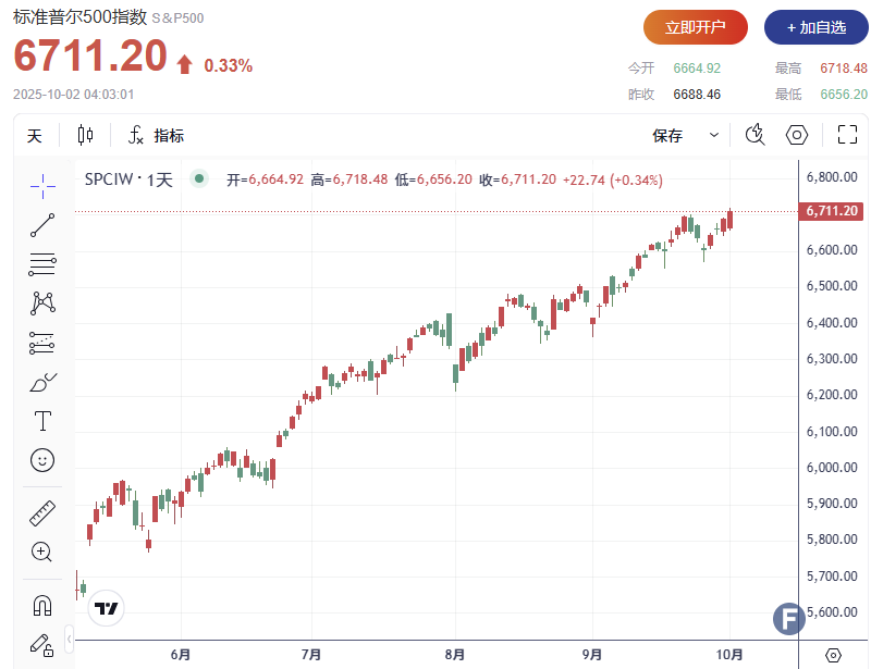 标普500指数盘中更创下历史新高,市场刚刚结束强劲的一个月,标普500在9月累计上涨逾3.5%。
