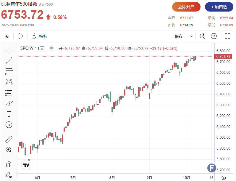 FX168财经报社(北美)讯 周三(10月8日),美国股市强势上攻,标普500指数与纳斯达克综合指数双双刷新盘中与收盘历史新高,延续人工智能(AI)热潮带来的市场动能。此前一日,因甲骨文公司(Oracle)股价大跌引发AI行情可持续性的担忧,标普结束了七连涨走势。目前,美国政府关门已进入第二周。#美股收评#