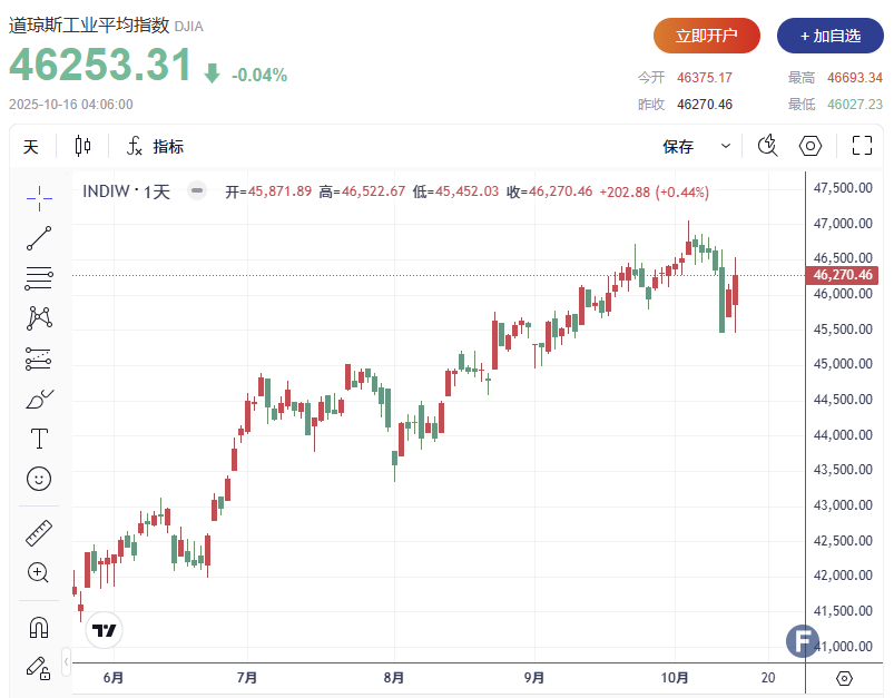 道琼斯工业平均指数小幅收跌17.15点(跌幅0.04%),报46,253.31点,盘中一度上涨422.88点。标普500指数上涨0.4%,收于6,671.06点,盘中一度涨幅高达1.2%。纳斯达克综合指数收涨0.7%,报22,670.08点,盘中一度飙升1.4%。