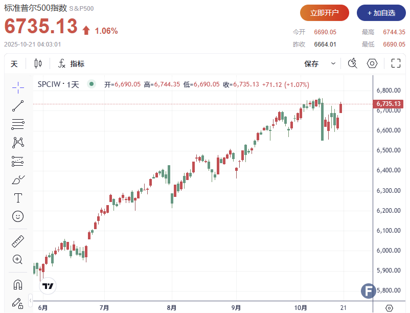 尽管上周市场波动加剧——贸易关系再起摩擦、地区性银行贷款损失引发抛售、部分人工智能(AI)龙头股回调——但美股仍以上涨收尾。分析人士指出,第三季度财报季良好开局显著提振市场信心,同时,投资者预计美联储将在10月底会议上再降息25个基点(0.25%)。