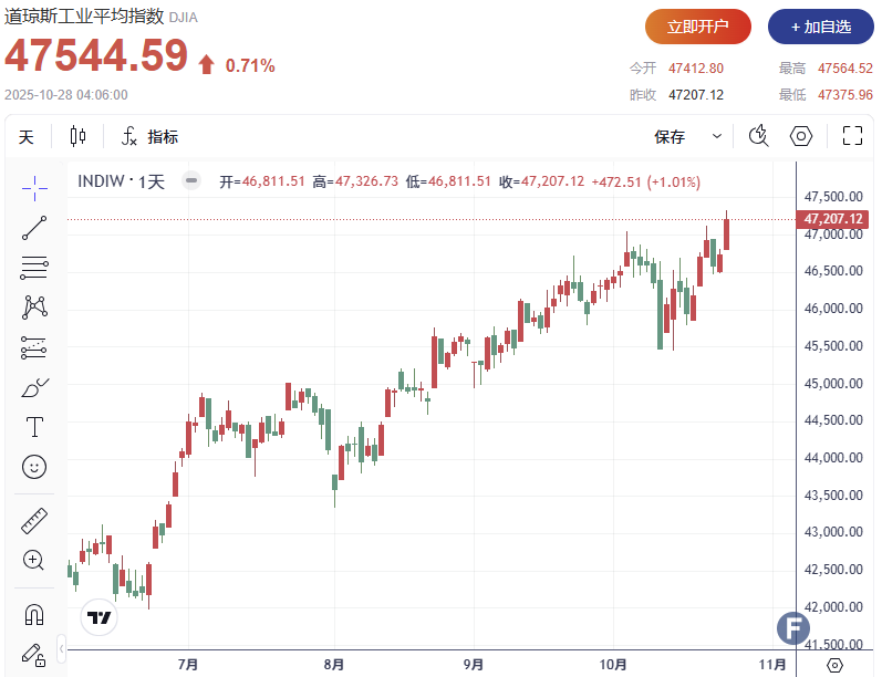 FX168财经报社(北美)讯 周一(10月27日),美股全面上涨,三大指数齐创历史新高。中美官员于周末缓和贸易紧张局势后,为中美两国元首本周的贸易协议谈判铺平了道路。#美股收评#