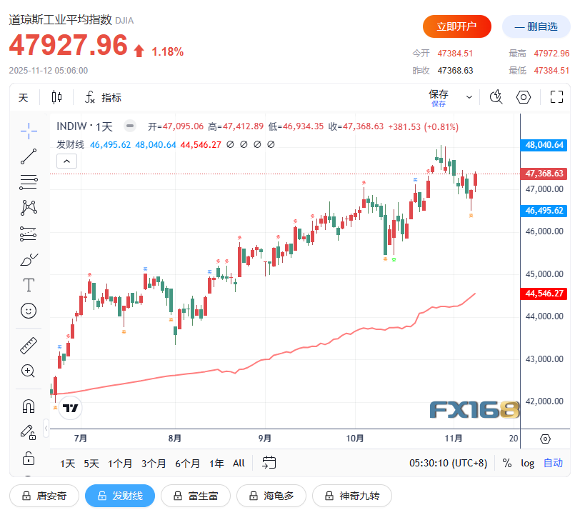 (道指日线图,来源:FX168)