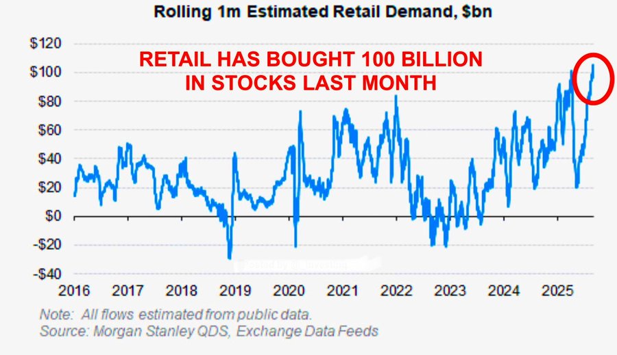根据 www.Todayusstock.com 报道,上个月美国散户投资者向美股投入1000亿美元,创下历史新高。今年以来,散户投资活动经历了三次明显的大跃进,显示出个人投资者在市场波动中的活跃度与影响力不断增强。