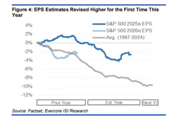伊曼纽尔在周日发布的报告中写道:“与今年上半年不同,标普500指数的每股收益预期在第三季度财报发布前已经显著上调。”