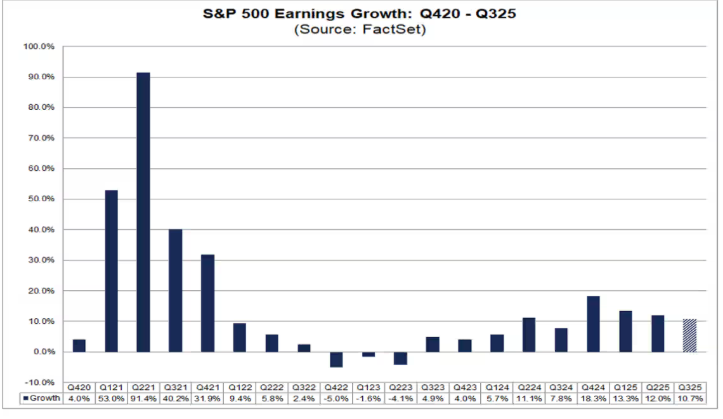 分析方面,据FactSet高级财报分析师约翰·巴特斯表示,标普500指数成分公司的第三季度盈利增长在过去一周上升至10.7%,目前财报整体趋势显示,这将是连续第四个季度实现两位数增长。上一次标普500连续四个季度实现两位数盈利增长还是在2021年。