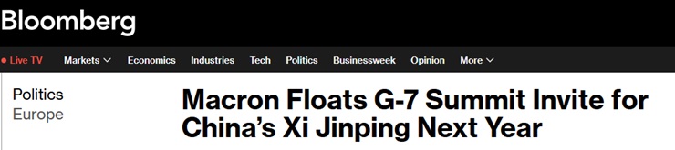彭博社报道称,对于马克龙而言,邀请习近平出席明年的峰会将是一项大胆的举措。马克龙的政府在国内举步维艰,他手中仅剩的一张牌就是在国际舞台上扮演一位伟大的政治家。