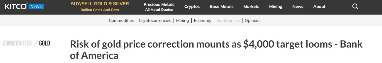 美国银行(Bank of America)大宗商品团队是年初首批强调4000美元/盎司目标的团队之一,他们当时表示,无需太多新的投资需求就能达到这一水平。