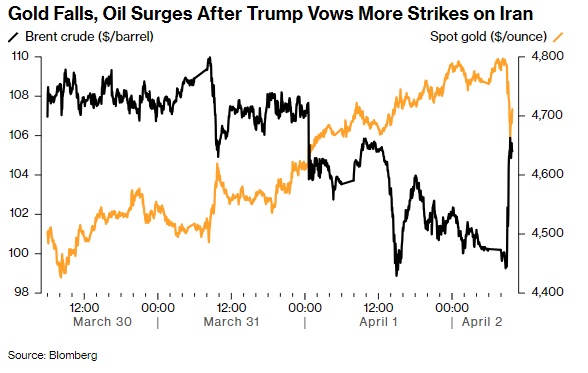 #伊朗危机追踪#24K99讯 周四(4月2日)亚市盘中,在美国总统特朗普(Donald Trump)发表了一场备受期待的讲话后,黄金价格出现暴跌。美国彭博社称,特朗普最新讲话未能就中东战争的解决提供明确方向。